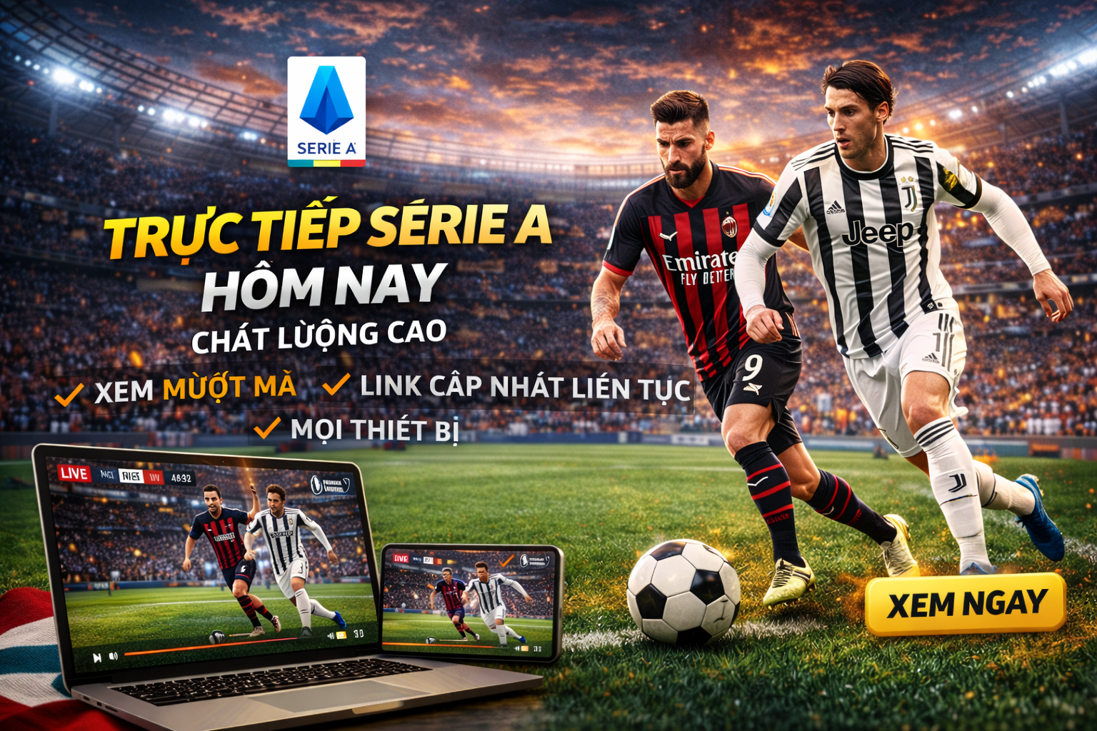 Bạn có thể xem Serie A trên điện thoại, laptop hoặc tablet một cách linh hoạt.